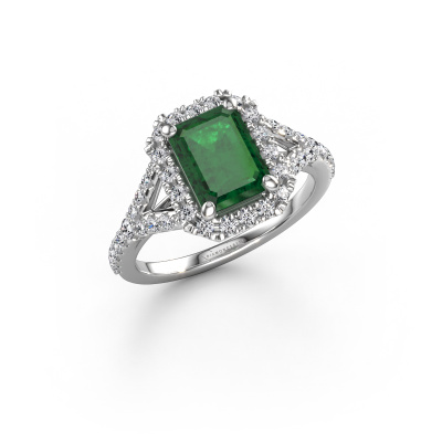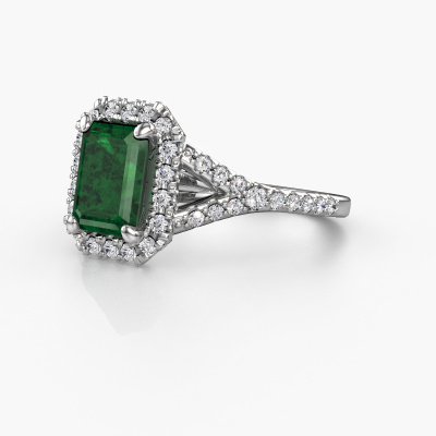 Der oben gezeigte Platin Verlobungsring wird Kimber EME genannt. Es ist ein Pavé Solitär Ring, da er einen zentralen Edelstein und ein Band mit Pavé-Fassung hat. Der exklusive Pavé Solitär Verlobungsring ist in der Kombination Platin mit Platin und ist mit einem smaragd schliff 8x6 mm Smaragd-Mittelstein besetzt und das Band hat eine Pavé-Fassung mit Lab grown Diamant. Jedes Schmuckstück wird hergestellt von einem Team leidenschaftlicher Goldschmiede und Schmuckdesigner. Das wird Ihr Kronjuwel unbedingt zu einem Blickfang machen. Um den zentralen Stein noch mehr zu betonen, hat das Band eine Pavé-Fassung mit weiteren Smaragd. Durch die offenen Krappen kann das Licht aus mehreren Winkeln auf den Smaragd treffen und der Smaragd-Ring funkelt noch mehr. Das obere Foto zeigt die leidenschaftlich handgefertigten Details des Rings. Die hohe Positionierung der Mittelstein ist ein echter Blickfang. Der perfekte Verlobungsring für das Kronjuwel Ihres Lebens!Durch die Kombination modernster Technik mit uralter Handwerkskunst können wir alle Verlobungsringe in unserem eigenen Studio anfertigen. Jedes Schmuckstück wird auf Anfrage gefertigt. Das ist vorteilhaft, weil wir Ihnen dadurch einen Preis anbieten können, den Sie nirgendwo anders finden.Unser Team fügt unserer Online-Kollektion täglich neue Designs hinzu. Unsere Designer und Goldschmiede arbeiten zusammen, um das beste Design zu kreieren. Wir bemühen uns, eine vielfältige Kollektion von Schmuckstücken anzubieten. Vielleicht haben Sie ein bestimmtes Design im Sinn. Eines, dass Sie irgendwo gesehen haben. Gerne geben wir Ihnen eine kostenlose Beratung. Wir machen Ihnen ein Angebot, basierend auf einem fairen Preis/Leistungsverhältnis, das Sie verblüffen wird.Um es einfacher zu machen, bieten wir eine kostenlose 30-tägige Rücksendung.