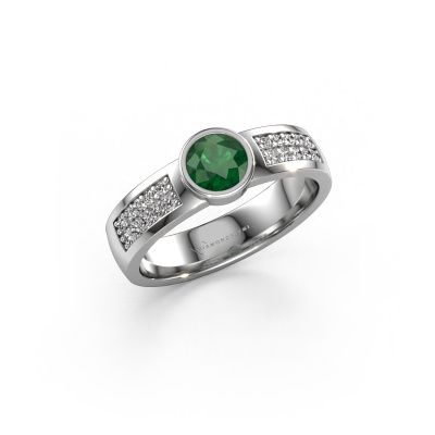 Der oben gezeigte Platin Verlobungsring wird Ise 3 genannt. Es ist ein Pavé Solitär Ring, da er einen zentralen Edelstein und ein Band mit Pavé-Fassung hat. Der moderne Pavé Solitär Verlobungsring ist in der Kombination Platin mit Platin und ist mit einem rund 4.7 mm Smaragd-Mittelstein besetzt und das Band hat eine Pavé-Fassung mit Diamanten. Jedes Schmuckstück wird von unseren Meister-Goldschmieden in unserem eigenen Studio für Sie gefertigt. Um den zentralen Stein noch mehr zu betonen, hat das Band eine Pavé-Fassung mit weiteren Smaragd. Durch die offenen Krappen kann das Licht aus mehreren Winkeln auf den Smaragd treffen und der Smaragd-Ring funkelt noch mehr. Das obere Foto zeigt die leidenschaftlich handgefertigten Details des Rings. Die hohe Positionierung der Mittelstein ist ein echter Blickfang. Der perfekte Verlobungsring für das Kronjuwel Ihres Lebens!Da wir unsere eigenen Ringe entwerfen und liefern, können wir Ihnen einen Verlobungsring zu einem Preis anbieten, den Sie nirgendwo anders finden. Ein Ring wird auf Bestellung angefertigt, wodurch kein überschüssiges Material anfällt. So können wir Ihnen ein gutes Angebot zum besten Preis machen. Wir verstehen, dass es sich riskant anfühlt, Ihren Verlobungsring online zu kaufen. Jedoch helfen wir Ihnen gerne beim Designprozess unter Berücksichtigung Ihres Budgets.Unser Team fügt unserer Online-Kollektion täglich neue Designs hinzu. Unsere Designer und Goldschmiede arbeiten zusammen, um das beste Design zu kreieren. Wir bemühen uns, eine vielfältige Kollektion von Schmuckstücken anzubieten. Vielleicht haben Sie ein bestimmtes Design im Sinn. Eines, dass Sie irgendwo gesehen haben. Gerne geben wir Ihnen eine kostenlose Beratung. Wir machen Ihnen ein Angebot, basierend auf einem fairen Preis/Leistungsverhältnis, das Sie verblüffen wird.Um es einfacher zu machen, bieten wir eine kostenlose 30-tägige Rücksendung.