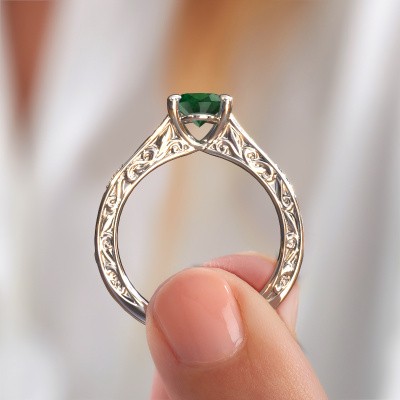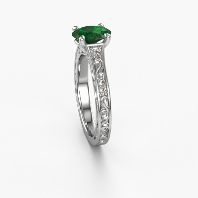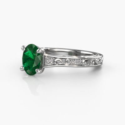 Der oben gezeigte Ring wird Mallory ovl genannt. Es ist ein Pavé Solitär Ring, da er einen zentralen Edelstein und ein Band mit Pavé-Fassung hat. Dieser Platin ring ist mit einem 8x6 mm oval Smaragd-Mittelstein besetzt und das Band hat eine Pavé-Fassung mit Lab grown Diamant. Jedes Schmuckstück wird hergestellt mit Leidenschaft und Liebe, von einem unserer Meister-Goldschmiede.Dieser traditionell Platin Pavé Solitär Verlobungsring mit Pavé-Fassung hat einen exquisiten, oval Smaragd als Mittelstein. Um den zentralen Stein noch mehr zu betonen, hat das Band eine Pavé-Fassung mit weiteren Lab grown Diamant. Durch die offenen Krappen kann das Licht aus mehreren Winkeln auf den Smaragd treffen und der Smaragd-Ring funkelt noch mehr. Das obere Foto zeigt die leidenschaftlich handgefertigten Details des Rings. Die hohe Positionierung der Mittelstein ist ein echter Blickfang. Der perfekte Verlobungsring für das Kronjuwel Ihres Lebens!Haben Sie ein bestimmtes Budget? Sie können uns gerne kontaktieren, damit wir Ihre Optionen besprechen können. Wir bieten unsere Verlobungsringe zum garantiert besten Preis, denn wir fertigen sie auf Bestellung. Solche Preise finden Sie nirgendwo anders!Unser Team fügt unserer Online-Kollektion täglich neue Designs hinzu. Unsere Designer und Goldschmiede arbeiten zusammen, um das beste Design zu kreieren. Wir bemühen uns, eine vielfältige Kollektion von Schmuckstücken anzubieten. Vielleicht haben Sie ein bestimmtes Design im Sinn. Eines, dass Sie irgendwo gesehen haben. Gerne geben wir Ihnen eine kostenlose Beratung. Wir machen Ihnen ein Angebot, basierend auf einem fairen Preis/Leistungsverhältnis, das Sie verblüffen wird.Um es einfacher zu machen, bieten wir eine kostenlose 30-tägige Rücksendung.