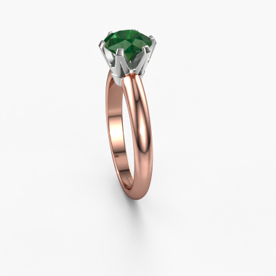 Der oben gezeigte Verlobungsring wird Tiffy 1 genannt. Wir nennen das einen Solitär-Ring, denn er hat einen einzelnen Edelstein. Es ist ein 14 Karat Roségold ring, mit 7 mm rund Smaragd. Das Besondere an unserem Konfigurator ist dass Sie selbst einem Schmuckstück zusammenstellen können zu einem eigenen persönlichen Schmuckstück. Dieser Solitäre Verlobungsring ist gefertigt in der Edelmetall Kombination Roségold mit Weißgold, aber Sie können also auch wählen aus anderen Farben. Jedes Schmuckstück wird nur für Sie persönlich hergestellt, mit Liebe zum Detail und Design. Der Solitär-Verlobungsring ist eine Sonderform des Verlobungsring. Seine offenen Krappen ermöglichen, dass Licht aus mehr Winkeln auf den Edelstein trifft. Dieser klassische Verlobungsring ist durch die hohe Positionierung des Edelsteins ein atemberaubender Blickfang. Wir schmücken diesen Solitär-Ring sorgfältig von Hand, damit Sie Ihren Anfrage mit einem einzigartigen Ring würdigen können. Die Liebe Ihres Lebens verdient nur das Beste. Mit unserer modernen Technik können wir Schmuckstücke von höchster Qualität mit größter Sorgfalt für Sie entwerfen und anpassen. Unsere Verlobungsringe sind immer um 30 Prozent günstiger als bei anderen Juwelieren. Wir fertigen Verlobungsringe auf Bestellung, also müssen wir keine großen Lager unterhalten. Wenn Sie ein bestimmtes Budget haben, beraten wir Sie gerne entsprechend.Unsere Designer und Goldschmiede arbeiten jeden Tag zusammen und versuchen, neue Schmuckstücke zu kreieren. Vielleicht haben Sie irgendwo einen schönen, klassische Verlobungsring gefunden, nach dem Ihr einzigartiger Ring gestaltet werden kann. Setzen Sie sich mit uns in Verbindung. Wir machen Ihnen ein Angebot, basierend auf einem fairen Preis/Leistungsverhältnis, das Sie begeistern wird.Um es einfacher zu machen, bieten wir eine kostenlose 30-tägige Rücksendung.