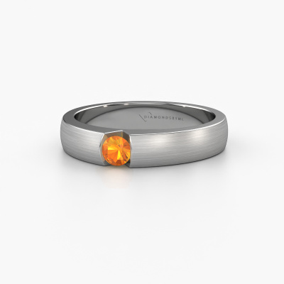 Dieser Verlobungsring aus Platin mit 3.4 mm Citrin heißt Theresia. Die Spann Fassung macht ihn zu einem besonderen Verlobungsring, weil sie den Citrin betont. Unser erfahrener Goldschmiede verwendet spezielle Techniken, um den Citrin in diesen Platin Ring zu setzen. Mit diesen Techniken wird das Licht frei reflektiert. Das verleiht dem Ring maximalen Glanz und eine glamouröse Erscheinung. Ein wahres Kunstwerk! Das Endprodukt ist ein einzigartiger Ring mit einer trendigen Erscheinung, der von unserem erfahrenen Juwelier leidenschaftlich in Handarbeit gefertigt wird. Ein einzigartiger Ring, entworfen für die Liebe Ihres Lebens. Wenn Sie diesen Ring wählen, empfehlen wir Ihnen einen Breiten Edelstein wie einen Diamant oder Saphir. Der Ring muss während der Herstellung viel Druck aushalten können. Jedes Schmuckstück wird von unseren Meister-Goldschmieden in unserem eigenen Studio für Sie gefertigt.Mit unserer modernen Technik können wir Schmuckstücke von höchster Qualität mit größter Sorgfalt für Sie entwerfen und anpassen. Unsere Verlobungsringe sind immer um 30 Prozent günstiger als bei anderen Juwelieren. Wir fertigen Verlobungsringe auf Bestellung, also müssen wir keine großen Lager unterhalten. Wenn Sie ein bestimmtes Budget haben, beraten wir Sie gerne entsprechend.Verschiedene Arten von neuen Ringen werden täglich von unserem Team angefertigt. Vielleicht haben Sie irgendwo einen Solitär Verlobungsring gefunden. Einen, den Sie Ihrem Liebsten schenken möchten. Bitte zögern Sie nicht, unseren Schmuckdesignern Ihre Gedanken und Ihr Design zu zeigen. Wir würden gerne Ihr Design in einen moderne Verlobungsring verwandeln. Sie können die Entwicklungen Ihres Ringdesigns verfolgen, da wir sehr detaillierte 3D-Zeichnungen verwenden. Darüber hinaus können Sie einen Dummy des Designs bestellen. Ein Dummy ist ein Kunststoffring, der nach Ihrem Ringdesign gestaltet werden kann. Sie können ihn anprobieren und prüfen, ob der Verlobungsring Ihren Vorstellungen entspricht. Wir senden Ihnen gerne ein unverbindliches Angebot zu einem fairen Preis/Leistungsverhältnis. Das Angebot wird Sie angesichts der Qualität des Rings und der Edelsteine verblüffen.Um es einfacher zu machen, bieten wir eine kostenlose 30-tägige Rücksendung.