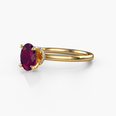 Der oben gezeigte Verlobungsring wird Crystal OVL 3 genannt. Wir nennen das einen Solitär-Ring, denn er hat einen einzelnen Edelstein. Es ist ein 14 Karat Gold Verlobungsring, mit 7,5x5,5 mm oval Rhodolit. Dieser einzigartige Gold Solitär-Ring mit exquisitem, oval Rhodolit ist ein schöner Verlobungsring. Die offenen Krappen ermöglichen, dass Licht aus mehr Winkeln auf den Edelstein trifft. Der Ring besticht auch durch die hohe Positionierung des Edelsteins. Denn Rhodolit symbolisieren wahre Liebe und Reinheit und machen sie damit zum perfekten Geschenk für die Liebe Ihres Lebens. Das Symbol der ewigen Liebe ist das Herzstück dieses Solitär-Rings. Wie ein Rhodolit haben auch alle anderen Arten von Edelmetallen ihre eigenen, zugeschriebenen symbolischen Bedeutungen. Diese Solitär Verlobungsring können Sie selbst zusammenstellen in verschiedenen Edelmetall Kombinationen. Dieser hat die Kombination 14 Karat Gold mit Gold. Jedes Schmuckstück wird von unseren Meister-Goldschmieden in unserem eigenen Studio für Sie gefertigt.Nach Erhalt Ihrer Bestellung beginnen unsere Goldschmiede mit Leidenschaft den kreativen Prozess und fertigen Ihren Verlobungsring in unserem eigenen Studio. Da wir keine großen Lager haben, werden diese Kosten nicht an Sie weitergegeben. Unsere Preisgestaltung ist der Beweis dafür! Wir bieten Schmuck zum niedrigsten Preis, garantiert.Unsere Designer und Goldschmiede arbeiten jeden Tag zusammen und versuchen, neue Schmuckstücke zu kreieren. Vielleicht haben Sie irgendwo einen schönen, einzigartige Verlobungsring gefunden, nach dem Ihr einzigartiger Ring gestaltet werden kann. Setzen Sie sich mit uns in Verbindung. Wir machen Ihnen ein Angebot, basierend auf einem fairen Preis/Leistungsverhältnis, das Sie begeistern wird.Um es einfacher zu machen, bieten wir eine kostenlose 30-tägige Rücksendung.