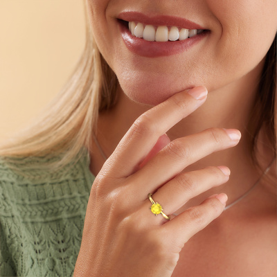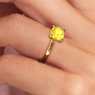 Der oben gezeigte Verlobungsring wird Crystal RND 1 genannt. Wir nennen das einen Solitär-Ring, denn er hat einen einzelnen Edelstein. Es ist ein 14 Karat Gold Verlobungsring, mit 6.8 mm rund Gelb Saphir. Dieser klassische Gold Solitär-Ring mit exquisitem, rund Gelb Saphir ist ein schöner Verlobungsring. Die offenen Krappen ermöglichen, dass Licht aus mehr Winkeln auf den Edelstein trifft. Der Ring besticht auch durch die hohe Positionierung des Edelsteins. Denn Gelb Saphir symbolisieren wahre Liebe und Reinheit und machen sie damit zum perfekten Geschenk für die Liebe Ihres Lebens. Das Symbol der ewigen Liebe ist das Herzstück dieses Solitär-Rings. Wie ein Gelb Saphir haben auch alle anderen Arten von Edelmetallen ihre eigenen, zugeschriebenen symbolischen Bedeutungen. Diese Solitär Verlobungsring können Sie selbst zusammenstellen in verschiedenen Edelmetall Kombinationen. Dieser hat die Kombination 14 Karat Gold mit Gold. Jedes Schmuckstück wird hergestellt von einem Team leidenschaftlicher Goldschmiede und Schmuckdesigner. Das wird Ihr Kronjuwel unbedingt zu einem Blickfang machen.Nach Erhalt Ihrer Bestellung beginnen unsere Goldschmiede mit Leidenschaft den kreativen Prozess und fertigen Ihren Verlobungsring in unserem eigenen Studio. Da wir keine großen Lager haben, werden diese Kosten nicht an Sie weitergegeben. Unsere Preisgestaltung ist der Beweis dafür! Wir bieten Schmuck zum niedrigsten Preis, garantiert.Haben Sie einen bestimmten Ring im Sinn? Eines, dass Sie irgendwo gesehen haben. Bitte zögern Sie nicht, uns zu sagen, was Sie wollen und wir werden Ihr Design in einen Einzigartigen Verlobungsring verwandeln. Sie können die Entwicklungen Ihres Ringdesigns verfolgen, da wir 3D-Zeichnungen verwenden. Das gibt Ihnen eine realistische Vorschau Ihres Designs. Wir senden Ihnen gerne ein unverbindliches Angebot zu einem fairen Preis/Leistungsverhältnis. Es wird Sie erstaunen.Um es einfacher zu machen, bieten wir eine kostenlose 30-tägige Rücksendung.