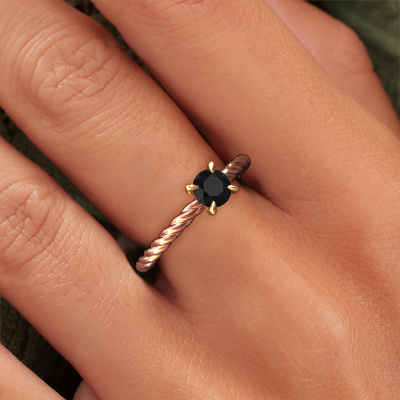 Der oben gezeigte Verlobungsring wird Twanna genannt. Wir nennen das einen Solitär-Ring, denn er hat einen einzelnen Edelstein. Es ist ein 14 Karat Roségold Verlobungsring, mit 0.60 crt rund Schwarz Diamant. Dieser Fantasie Roségold Solitär-Ring mit exquisitem, rund Schwarz Diamant ist ein schöner Verlobungsring. Die offenen Krappen ermöglichen, dass Licht aus mehr Winkeln auf den Edelstein trifft. Der Ring besticht auch durch die hohe Positionierung des Edelsteins. Denn Schwarz Diamant symbolisieren wahre Liebe und Reinheit und machen sie damit zum perfekten Geschenk für die Liebe Ihres Lebens. Das Symbol der ewigen Liebe ist das Herzstück dieses Solitär-Rings. Wie ein Schwarz Diamant haben auch alle anderen Arten von Edelmetallen ihre eigenen, zugeschriebenen symbolischen Bedeutungen. Diese Solitär Verlobungsring können Sie selbst zusammenstellen in verschiedenen Edelmetall Kombinationen. Dieser hat die Kombination 14 Karat Roségold mit Gold. Jedes Schmuckstück wird hergestellt von einem Team leidenschaftlicher Goldschmiede und Schmuckdesigner. Das wird Ihr Kronjuwel unbedingt zu einem Blickfang machen.Nach Erhalt Ihrer Bestellung beginnen unsere Goldschmiede mit Leidenschaft den kreativen Prozess und fertigen Ihren Verlobungsring in unserem eigenen Studio. Da wir keine großen Lager haben, werden diese Kosten nicht an Sie weitergegeben. Unsere Preisgestaltung ist der Beweis dafür! Wir bieten Schmuck zum niedrigsten Preis, garantiert.Haben Sie einen bestimmten Ring im Sinn? Eines, dass Sie irgendwo gesehen haben. Bitte zögern Sie nicht, uns zu sagen, was Sie wollen und wir werden Ihr Design in einen Einzigartigen Verlobungsring verwandeln. Sie können die Entwicklungen Ihres Ringdesigns verfolgen, da wir 3D-Zeichnungen verwenden. Das gibt Ihnen eine realistische Vorschau Ihres Designs. Wir senden Ihnen gerne ein unverbindliches Angebot zu einem fairen Preis/Leistungsverhältnis. Es wird Sie erstaunen.Um es einfacher zu machen, bieten wir eine kostenlose 30-tägige Rücksendung.