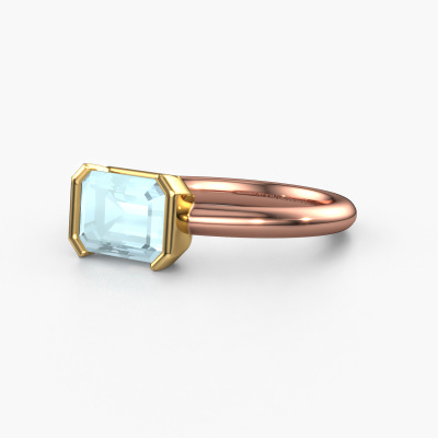 Der oben gezeigte Verlobungsring wird Tayler EME genannt. Wir nennen das einen Solitär-Ring, denn er hat einen einzelnen Edelstein. Es ist ein 14 Karat Roségold Verlobungsring, mit 8x6 mm smaragd schliff Aquamarin. Dieser moderne Roségold Solitär-Ring mit exquisitem, smaragd schliff Aquamarin ist ein schöner Verlobungsring. Die offenen Krappen ermöglichen, dass Licht aus mehr Winkeln auf den Edelstein trifft. Der Ring besticht auch durch die hohe Positionierung des Edelsteins. Denn Aquamarin symbolisieren wahre Liebe und Reinheit und machen sie damit zum perfekten Geschenk für die Liebe Ihres Lebens. Das Symbol der ewigen Liebe ist das Herzstück dieses Solitär-Rings. Wie ein Aquamarin haben auch alle anderen Arten von Edelmetallen ihre eigenen, zugeschriebenen symbolischen Bedeutungen. Diese Solitär Verlobungsring können Sie selbst zusammenstellen in verschiedenen Edelmetall Kombinationen. Dieser hat die Kombination 14 Karat Roségold mit Gold. Jedes Schmuckstück ist um Ihrem Finger Glanz zu verleihen. Jeder Ring wird von unseren Goldschmieden liebevoll von Hand gefertigt.Nach Erhalt Ihrer Bestellung beginnen unsere Goldschmiede mit Leidenschaft den kreativen Prozess und fertigen Ihren Verlobungsring in unserem eigenen Studio. Da wir keine großen Lager haben, werden diese Kosten nicht an Sie weitergegeben. Unsere Preisgestaltung ist der Beweis dafür! Wir bieten Schmuck zum niedrigsten Preis, garantiert.Unsere Designer und Goldschmiede arbeiten jeden Tag zusammen und versuchen, neue Schmuckstücke zu kreieren. Vielleicht haben Sie irgendwo einen schönen, moderne Verlobungsring gefunden, nach dem Ihr einzigartiger Ring gestaltet werden kann. Setzen Sie sich mit uns in Verbindung. Wir machen Ihnen ein Angebot, basierend auf einem fairen Preis/Leistungsverhältnis, das Sie begeistern wird.Um es einfacher zu machen, bieten wir eine kostenlose 30-tägige Rücksendung.