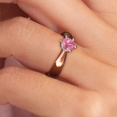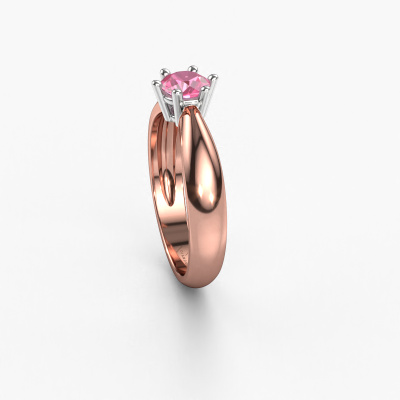 Der oben gezeigte Verlobungsring wird Fay genannt. Wir nennen das einen Solitär-Ring, denn er hat einen einzelnen Edelstein. Es ist ein 14 Karat Roségold Verlobungsring, mit 5 mm rund Pink Saphir. Dieser traditionell Roségold Solitär-Ring mit exquisitem, rund Pink Saphir ist ein schöner Verlobungsring. Die offenen Krappen ermöglichen, dass Licht aus mehr Winkeln auf den Edelstein trifft. Der Ring besticht auch durch die hohe Positionierung des Edelsteins. Denn Pink Saphir symbolisieren wahre Liebe und Reinheit und machen sie damit zum perfekten Geschenk für die Liebe Ihres Lebens. Das Symbol der ewigen Liebe ist das Herzstück dieses Solitär-Rings. Wie ein Pink Saphir haben auch alle anderen Arten von Edelmetallen ihre eigenen, zugeschriebenen symbolischen Bedeutungen. Diese Solitär Verlobungsring können Sie selbst zusammenstellen in verschiedenen Edelmetall Kombinationen. Dieser hat die Kombination 14 Karat Roségold mit Weißgold. Jedes Schmuckstück wird von unseren Meister-Goldschmieden in unserem eigenen Studio für Sie gefertigt.Durch die Kombination modernster Technik mit uralter Handwerkskunst können wir alle Verlobungsringe in unserem eigenen Studio anfertigen. Jedes Schmuckstück wird auf Anfrage gefertigt. Das ist vorteilhaft, weil wir Ihnen dadurch einen Preis anbieten können, den Sie nirgendwo anders finden.Haben Sie irgendwo einen bestimmten Verlobungsring gefunden, den Sie Ihrem Liebsten schenken möchten? Sie können uns gerne sagen, was Sie wollen und wir werden Ihr Design in einen Einzigartigen traditionell Verlobungsring verwandeln. Sie können die Entwicklungen Ihres Ringdesigns verfolgen, da wir 3D-Zeichnungen verwenden. Das gibt Ihnen eine realistische Vorschau, wie Ihr Design aussehen wird. Sie können auch einen Dummy vorbestellen. Ein Dummy ist ein Kunststoffring, der nach Ihrem Ringdesign gestaltet werden kann. Sie können ihn anprobieren und prüfen, ob seine Breite und Größe für Sie geeignet sind. Wir senden Ihnen gerne ein unverbindliches Angebot zu einem fairen Preis/Leistungsverhältnis. Sie werden in Anbetracht der Qualität des Rings und der Edelsteine überrascht sein.Um es einfacher zu machen, bieten wir eine kostenlose 30-tägige Rücksendung.