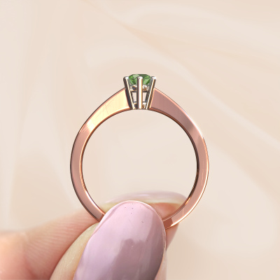 Der oben gezeigte Verlobungsring wird Noortje genannt. Wir nennen das einen Solitär-Ring, denn er hat einen einzelnen Edelstein. Es ist ein 585 Roségold Verlobungsring, mit 4 mm rund Turmalin grün. Dieser klassische Roségold Solitär-Ring mit exquisitem, rund Turmalin grün ist ein schöner Verlobungsring. Die offenen Krappen ermöglichen, dass Licht aus mehr Winkeln auf den Edelstein trifft. Der Ring besticht auch durch die hohe Positionierung des Edelsteins. Denn Turmalin grün symbolisieren wahre Liebe und Reinheit und machen sie damit zum perfekten Geschenk für die Liebe Ihres Lebens. Das Symbol der ewigen Liebe ist das Herzstück dieses Solitär-Rings. Wie ein Turmalin grün haben auch alle anderen Arten von Edelmetallen ihre eigenen, zugeschriebenen symbolischen Bedeutungen. Diese Solitär Verlobungsring können Sie selbst zusammenstellen in verschiedenen Edelmetall Kombinationen. Dieser hat die Kombination 585 Roségold mit Weißgold. Jedes Schmuckstück wird hergestellt von einem Team leidenschaftlicher Goldschmiede und Schmuckdesigner. Das wird Ihr Kronjuwel unbedingt zu einem Blickfang machen.Durch die Kombination modernster Technik mit uralter Handwerkskunst können wir alle Verlobungsringe in unserem eigenen Studio anfertigen. Jedes Schmuckstück wird auf Anfrage gefertigt. Das ist vorteilhaft, weil wir Ihnen dadurch einen Preis anbieten können, den Sie nirgendwo anders finden.Unser Team fügt unserer Online-Kollektion täglich neue Designs hinzu. Unsere Designer und Goldschmiede arbeiten zusammen, um das beste Design zu kreieren. Wir bemühen uns, eine vielfältige Kollektion von Schmuckstücken anzubieten. Vielleicht haben Sie ein bestimmtes Design im Sinn. Eines, dass Sie irgendwo gesehen haben. Gerne geben wir Ihnen eine kostenlose Beratung. Wir machen Ihnen ein Angebot, basierend auf einem fairen Preis/Leistungsverhältnis, das Sie verblüffen wird.Um es einfacher zu machen, bieten wir eine kostenlose 30-tägige Rücksendung.