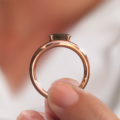 Dieser Verlobungsring aus 14 Karat Roségold mit Rauchquarz heißt Floor OVL. Halten Sie mit den neuesten Modetrends Schritt? Möchten Sie einen einzigartigen Verlobungsring, der zu Ihrem Lebensstil passt? Dieser Drehungen Verlobungsring ist ein
