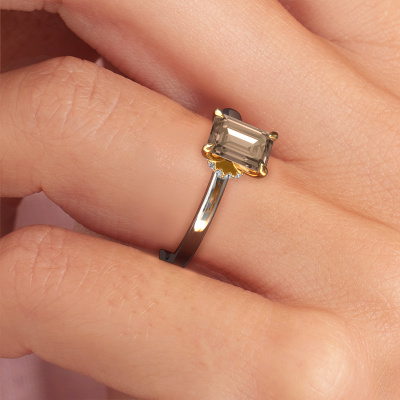 Der oben gezeigte Verlobungsring wird Crystal EME 3 genannt. Wir nennen das einen Solitär-Ring, denn er hat einen einzelnen Edelstein. Es ist ein 14 Karat Weißgold Verlobungsring, mit 1.15 crt smaragd schliff Braun Diamant. Dieser klassische Weißgold Solitär-Ring mit exquisitem, smaragd schliff Braun Diamant ist ein schöner Verlobungsring. Die offenen Krappen ermöglichen, dass Licht aus mehr Winkeln auf den Edelstein trifft. Der Ring besticht auch durch die hohe Positionierung des Edelsteins. Denn Braun Diamant symbolisieren wahre Liebe und Reinheit und machen sie damit zum perfekten Geschenk für die Liebe Ihres Lebens. Das Symbol der ewigen Liebe ist das Herzstück dieses Solitär-Rings. Wie ein Braun Diamant haben auch alle anderen Arten von Edelmetallen ihre eigenen, zugeschriebenen symbolischen Bedeutungen. Diese Solitär Verlobungsring können Sie selbst zusammenstellen in verschiedenen Edelmetall Kombinationen. Dieser hat die Kombination 14 Karat Weißgold mit Gold. Jedes Schmuckstück wird hergestellt von einem Team leidenschaftlicher Goldschmiede und Schmuckdesigner. Das wird Ihr Kronjuwel unbedingt zu einem Blickfang machen.Mit unserer modernen Technik können wir Schmuckstücke von höchster Qualität mit größter Sorgfalt für Sie entwerfen und anpassen. Unsere Verlobungsringe sind immer um 30 Prozent günstiger als bei anderen Juwelieren. Wir fertigen Verlobungsringe auf Bestellung, also müssen wir keine großen Lager unterhalten. Wenn Sie ein bestimmtes Budget haben, beraten wir Sie gerne entsprechend.Haben Sie einen bestimmten Ring im Sinn? Eines, dass Sie irgendwo gesehen haben. Bitte zögern Sie nicht, uns zu sagen, was Sie wollen und wir werden Ihr Design in einen Einzigartigen Verlobungsring verwandeln. Sie können die Entwicklungen Ihres Ringdesigns verfolgen, da wir 3D-Zeichnungen verwenden. Das gibt Ihnen eine realistische Vorschau Ihres Designs. Wir senden Ihnen gerne ein unverbindliches Angebot zu einem fairen Preis/Leistungsverhältnis. Es wird Sie erstaunen.Um es einfacher zu machen, bieten wir eine kostenlose 30-tägige Rücksendung.