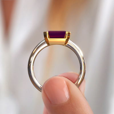 Der oben gezeigte Verlobungsring wird Tayler EME genannt. Wir nennen das einen Solitär-Ring, denn er hat einen einzelnen Edelstein. Es ist ein 14 Karat Weißgold Verlobungsring, mit 8x6 mm smaragd schliff Rhodolit. Dieser moderne Weißgold Solitär-Ring mit exquisitem, smaragd schliff Rhodolit ist ein schöner Verlobungsring. Die offenen Krappen ermöglichen, dass Licht aus mehr Winkeln auf den Edelstein trifft. Der Ring besticht auch durch die hohe Positionierung des Edelsteins. Denn Rhodolit symbolisieren wahre Liebe und Reinheit und machen sie damit zum perfekten Geschenk für die Liebe Ihres Lebens. Das Symbol der ewigen Liebe ist das Herzstück dieses Solitär-Rings. Wie ein Rhodolit haben auch alle anderen Arten von Edelmetallen ihre eigenen, zugeschriebenen symbolischen Bedeutungen. Diese Solitär Verlobungsring können Sie selbst zusammenstellen in verschiedenen Edelmetall Kombinationen. Dieser hat die Kombination 14 Karat Weißgold mit Gold. Jedes Schmuckstück ist um Ihrem Finger Glanz zu verleihen. Jeder Ring wird von unseren Goldschmieden liebevoll von Hand gefertigt.Nach Erhalt Ihrer Bestellung beginnen unsere Goldschmiede mit Leidenschaft den kreativen Prozess und fertigen Ihren Verlobungsring in unserem eigenen Studio. Da wir keine großen Lager haben, werden diese Kosten nicht an Sie weitergegeben. Unsere Preisgestaltung ist der Beweis dafür! Wir bieten Schmuck zum niedrigsten Preis, garantiert.Unsere Designer und Goldschmiede arbeiten jeden Tag zusammen und versuchen, neue Schmuckstücke zu kreieren. Vielleicht haben Sie irgendwo einen schönen, moderne Verlobungsring gefunden, nach dem Ihr einzigartiger Ring gestaltet werden kann. Setzen Sie sich mit uns in Verbindung. Wir machen Ihnen ein Angebot, basierend auf einem fairen Preis/Leistungsverhältnis, das Sie begeistern wird.Um es einfacher zu machen, bieten wir eine kostenlose 30-tägige Rücksendung.