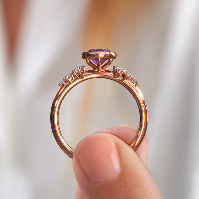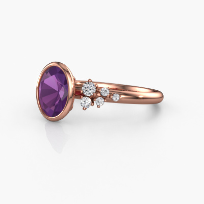 Dieser Verlobungsring aus 585 Roségold mit Amethyst heißt Aliyah OVL. Halten Sie mit den neuesten Modetrends Schritt? Möchten Sie einen einzigartigen Verlobungsring, der zu Ihrem Lebensstil passt? Dieser besondere Verlobungsring ist ein außergewöhnlicher Ring, der individuell an Ihren persönlichen Stil angepasst werden kann. Dieser moderne, Roségold Verlobungsring ist mit Amethysten besetzt. Diese Amethysten werden sorgfältig für diesen speziellen Ring ausgewählt, um mit ihm den besten Effekt zu erzielen. Unser erfahrener Juwelier kreiert Ihren Ring in unserem eigenen Studio, wo der Amethyst mit großer Sorgfalt eingefasst wird. Der Ring wird dann bis zur Perfektion bearbeitet und poliert. Nichts als das Beste für die Liebe Ihres Lebens! Jedes Schmuckstück wird hergestellt von einem Team leidenschaftlicher Goldschmiede und Schmuckdesigner. Das wird Ihr Kronjuwel unbedingt zu einem Blickfang machen.Durch die Kombination modernster Technik mit uralter Handwerkskunst können wir alle Verlobungsringe in unserem eigenen Studio anfertigen. Jedes Schmuckstück wird auf Anfrage gefertigt. Das ist vorteilhaft, weil wir Ihnen dadurch einen Preis anbieten können, den Sie nirgendwo anders finden.Verschiedene Arten von neuen Ringen werden täglich von unserem Team angefertigt. Vielleicht haben Sie irgendwo einen [sortv] Verlobungsring gefunden. Einen, den Sie Ihrem Liebsten schenken möchten. Bitte zögern Sie nicht, unseren Schmuckdesignern Ihre Gedanken und Ihr Design zu zeigen. Wir würden gerne Ihr Design in einen moderne Verlobungsring verwandeln. Sie können die Entwicklungen Ihres Ringdesigns verfolgen, da wir sehr detaillierte 3D-Zeichnungen verwenden. Darüber hinaus können Sie einen Dummy des Designs bestellen. Ein Dummy ist ein Kunststoffring, der nach Ihrem Ringdesign gestaltet werden kann. Sie können ihn anprobieren und prüfen, ob der Verlobungsring Ihren Vorstellungen entspricht. Wir senden Ihnen gerne ein unverbindliches Angebot zu einem fairen Preis/Leistungsverhältnis. Das Angebot wird Sie angesichts der Qualität des Rings und der Edelsteine verblüffen.Um es einfacher zu machen, bieten wir eine kostenlose 30-tägige Rücksendung.