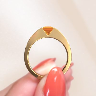 Dieser Verlobungsring aus 14 Karat Gold mit 4 mm Citrin heißt Arlena 1. Die Spann Fassung macht ihn zu einem besonderen Verlobungsring, weil sie den Citrin betont. Unser erfahrener Goldschmiede verwendet spezielle Techniken, um den Citrin in diesen Gold Ring zu setzen. Mit diesen Techniken wird das Licht frei reflektiert. Das verleiht dem Ring maximalen Glanz und eine glamouröse Erscheinung. Ein wahres Kunstwerk! Das Endprodukt ist ein einzigartiger Ring mit einer trendigen Erscheinung, der von unserem erfahrenen Juwelier leidenschaftlich in Handarbeit gefertigt wird. Ein einzigartiger Ring, entworfen für die Liebe Ihres Lebens. Wenn Sie diesen Ring wählen, empfehlen wir Ihnen einen Breiten Edelstein wie einen Diamant oder Saphir. Der Ring muss während der Herstellung viel Druck aushalten können. Jedes Schmuckstück wird nur für Sie persönlich hergestellt, mit Liebe zum Detail und Design.Durch die Kombination modernster Technik mit uralter Handwerkskunst können wir alle Verlobungsringe in unserem eigenen Studio anfertigen. Jedes Schmuckstück wird auf Anfrage gefertigt. Das ist vorteilhaft, weil wir Ihnen dadurch einen Preis anbieten können, den Sie nirgendwo anders finden.Haben Sie einen bestimmten Ring im Sinn? Eines, dass Sie irgendwo gesehen haben. Bitte zögern Sie nicht, uns zu sagen, was Sie wollen und wir werden Ihr Design in einen Einzigartigen Verlobungsring verwandeln. Sie können die Entwicklungen Ihres Ringdesigns verfolgen, da wir 3D-Zeichnungen verwenden. Das gibt Ihnen eine realistische Vorschau Ihres Designs. Wir senden Ihnen gerne ein unverbindliches Angebot zu einem fairen Preis/Leistungsverhältnis. Es wird Sie erstaunen.Um es einfacher zu machen, bieten wir eine kostenlose 30-tägige Rücksendung.