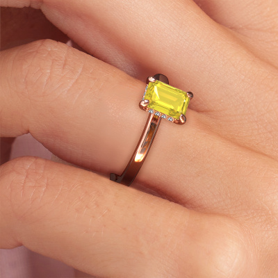 Der oben gezeigte Verlobungsring wird Simone EME 2 genannt. Wir nennen das einen Solitär-Ring, denn er hat einen einzelnen Edelstein. Es ist ein 14 Karat Roségold Verlobungsring, mit 7x5 mm smaragd schliff Gelb Saphir. Dieser außergewöhnliche, traditionell Roségold Solitär-Verlobungsring mit einem schönen, smaragd schliff Gelb Saphir soll Ihrem Antrag ein Funkeln geben. Die offenen Krappen ermöglichen, dass Licht aus mehr Winkeln auf den Edelstein trifft. Wussten Sie, dass ein Gelb Saphir für ewige Liebe und Treue steht? Das macht ihn zum perfekten Mittelstück. Unsere Goldschmiede positioniert den Edelstein Ihrer Wahl sorgfältig oben auf dem Ring. Dadurch sticht er hervor. Jedes Schmuckstück wird hergestellt von einem Team leidenschaftlicher Goldschmiede und Schmuckdesigner. Das wird Ihr Kronjuwel unbedingt zu einem Blickfang machen.Mit unserer modernen Technik können wir Schmuckstücke von höchster Qualität mit größter Sorgfalt für Sie entwerfen und anpassen. Unsere Verlobungsringe sind immer um 30 Prozent günstiger als bei anderen Juwelieren. Wir fertigen Verlobungsringe auf Bestellung, also müssen wir keine großen Lager unterhalten. Wenn Sie ein bestimmtes Budget haben, beraten wir Sie gerne entsprechend.Haben Sie einen bestimmten Ring im Sinn? Eines, dass Sie irgendwo gesehen haben. Bitte zögern Sie nicht, uns zu sagen, was Sie wollen und wir werden Ihr Design in einen Einzigartigen Verlobungsring verwandeln. Sie können die Entwicklungen Ihres Ringdesigns verfolgen, da wir 3D-Zeichnungen verwenden. Das gibt Ihnen eine realistische Vorschau Ihres Designs. Wir senden Ihnen gerne ein unverbindliches Angebot zu einem fairen Preis/Leistungsverhältnis. Es wird Sie erstaunen.Um es einfacher zu machen, bieten wir eine kostenlose 30-tägige Rücksendung.