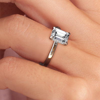 Der oben gezeigte Verlobungsring wird Simone EME 2 genannt. Wir nennen das einen Solitär-Ring, denn er hat einen einzelnen Edelstein. Es ist ein 585 Weißgold Verlobungsring, mit 1.50 crt smaragd schliff Diamant. Dieser außergewöhnliche, traditionell Weißgold Solitär-Verlobungsring mit einem schönen, smaragd schliff Diamant soll Ihrem Antrag ein Funkeln geben. Die offenen Krappen ermöglichen, dass Licht aus mehr Winkeln auf den Edelstein trifft. Wussten Sie, dass ein Diamant für ewige Liebe und Treue steht? Das macht ihn zum perfekten Mittelstück. Unsere Goldschmiede positioniert den Edelstein Ihrer Wahl sorgfältig oben auf dem Ring. Dadurch sticht er hervor. Jedes Schmuckstück wird hergestellt von einem Team leidenschaftlicher Goldschmiede und Schmuckdesigner. Das wird Ihr Kronjuwel unbedingt zu einem Blickfang machen.Mit unserer modernen Technik können wir Schmuckstücke von höchster Qualität mit größter Sorgfalt für Sie entwerfen und anpassen. Unsere Verlobungsringe sind immer um 30 Prozent günstiger als bei anderen Juwelieren. Wir fertigen Verlobungsringe auf Bestellung, also müssen wir keine großen Lager unterhalten. Wenn Sie ein bestimmtes Budget haben, beraten wir Sie gerne entsprechend.Haben Sie einen bestimmten Ring im Sinn? Eines, dass Sie irgendwo gesehen haben. Bitte zögern Sie nicht, uns zu sagen, was Sie wollen und wir werden Ihr Design in einen Einzigartigen Verlobungsring verwandeln. Sie können die Entwicklungen Ihres Ringdesigns verfolgen, da wir 3D-Zeichnungen verwenden. Das gibt Ihnen eine realistische Vorschau Ihres Designs. Wir senden Ihnen gerne ein unverbindliches Angebot zu einem fairen Preis/Leistungsverhältnis. Es wird Sie erstaunen.Um es einfacher zu machen, bieten wir eine kostenlose 30-tägige Rücksendung.