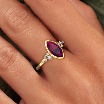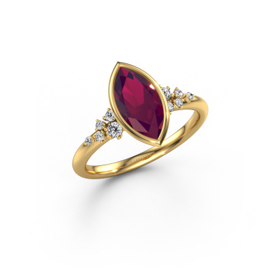 Dieser Verlobungsring aus 585 Gold heißt Aliyah MRQ. Sind Sie auf der Suche nach einem trendige, Gold Verlobungsring mit Rhodolit 11x5.5 mm, den Sie nach Ihren Wünschen gestalten können? Dieser trendige Verlobungsring ist mit Rhodolit besetzt, der sorgfältig für diesen speziellen Ring ausgewählt wurde, um den besten Effekt zu erzielen. Unser erfahrener Juwelier kreiert Ihren Ring in unserem eigenen Studio eine Etage tiefer, wo der Rhodolit mit großer Sorgfalt eingefasst wird. Der Ring wird dann bearbeitet und poliert, bis er perfekt ist. Nichts als das Beste für die Liebe Ihres Lebens! Das Besondere an unserem Konfigurator ist dass Sie selbst einem Schmuckstück zusammenstellen können zu einem eigenen persönlichen Schmuckstück. Jedes Schmuckstück wird hergestellt von einem Team leidenschaftlicher Goldschmiede und Schmuckdesigner. Das wird Ihr Kronjuwel unbedingt zu einem Blickfang machen.. Mit unserer modernen Technik können wir Schmuckstücke von höchster Qualität mit größter Sorgfalt für Sie entwerfen und anpassen. Unsere Verlobungsringe sind immer um 30 Prozent günstiger als bei anderen Juwelieren. Wir fertigen Verlobungsringe auf Bestellung, also müssen wir keine großen Lager unterhalten. Wenn Sie ein bestimmtes Budget haben, beraten wir Sie gerne entsprechend.Unsere Designer und Goldschmiede arbeiten jeden Tag zusammen und versuchen, neue Schmuckstücke zu kreieren. Vielleicht haben Sie irgendwo einen schönen, trendige Verlobungsring gefunden, nach dem Ihr einzigartiger Ring gestaltet werden kann. Setzen Sie sich mit uns in Verbindung. Wir machen Ihnen ein Angebot, basierend auf einem fairen Preis/Leistungsverhältnis, das Sie begeistern wird.Um es einfacher zu machen, bieten wir eine kostenlose 30-tägige Rücksendung.