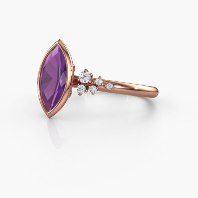 Dieser Verlobungsring aus 585 Roségold heißt Aliyah MRQ. Sind Sie auf der Suche nach einem trendige, Roségold Verlobungsring mit Amethyst 11x5.5 mm, den Sie nach Ihren Wünschen gestalten können? Dieser trendige Verlobungsring ist mit Amethyst besetzt, der sorgfältig für diesen speziellen Ring ausgewählt wurde, um den besten Effekt zu erzielen. Unser erfahrener Juwelier kreiert Ihren Ring in unserem eigenen Studio eine Etage tiefer, wo der Amethyst mit großer Sorgfalt eingefasst wird. Der Ring wird dann bearbeitet und poliert, bis er perfekt ist. Nichts als das Beste für die Liebe Ihres Lebens! Das Besondere an unserem Konfigurator ist dass Sie selbst einem Schmuckstück zusammenstellen können zu einem eigenen persönlichen Schmuckstück. Jedes Schmuckstück wird hergestellt von einem Team leidenschaftlicher Goldschmiede und Schmuckdesigner. Das wird Ihr Kronjuwel unbedingt zu einem Blickfang machen.. Mit unserer modernen Technik können wir Schmuckstücke von höchster Qualität mit größter Sorgfalt für Sie entwerfen und anpassen. Unsere Verlobungsringe sind immer um 30 Prozent günstiger als bei anderen Juwelieren. Wir fertigen Verlobungsringe auf Bestellung, also müssen wir keine großen Lager unterhalten. Wenn Sie ein bestimmtes Budget haben, beraten wir Sie gerne entsprechend.Unsere Designer und Goldschmiede arbeiten jeden Tag zusammen und versuchen, neue Schmuckstücke zu kreieren. Vielleicht haben Sie irgendwo einen schönen, trendige Verlobungsring gefunden, nach dem Ihr einzigartiger Ring gestaltet werden kann. Setzen Sie sich mit uns in Verbindung. Wir machen Ihnen ein Angebot, basierend auf einem fairen Preis/Leistungsverhältnis, das Sie begeistern wird.Um es einfacher zu machen, bieten wir eine kostenlose 30-tägige Rücksendung.