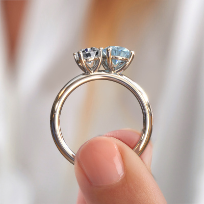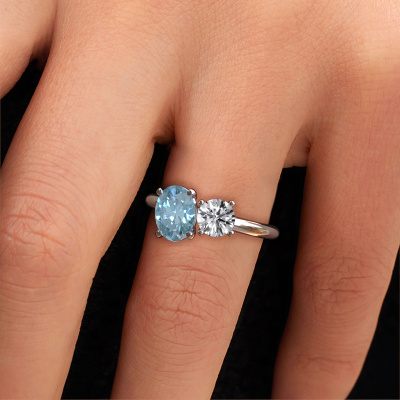 Dieser Verlobungsring aus 14 Karat Weißgold heißt Toi et Moi OVL-RND. Suchen Sie nach einem einzigartigen Weißgold Verlobungsring mit einem trendigen Aussehen? Dann ist dieser Ring mit blauer Labordiamant das Richtige für Sie. Einfach nach Ihren