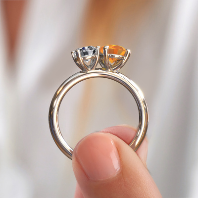 Dieser Verlobungsring aus 14 Karat Weißgold heißt Toi et Moi OVL-RND. Suchen Sie nach einem einzigartigen Weißgold Verlobungsring mit einem trendigen Aussehen? Dann ist dieser Ring mit Citrin das Richtige für Sie. Einfach nach Ihren Wünschen