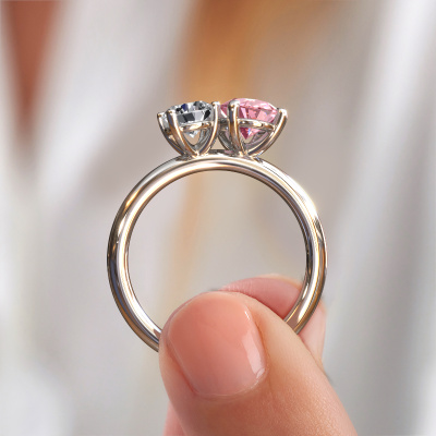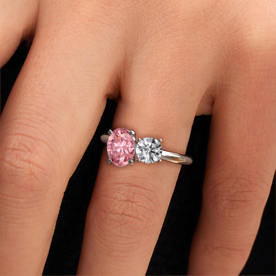 Dieser Verlobungsring aus 14 Karat Weißgold heißt Toi et Moi OVL-RND. Suchen Sie nach einem einzigartigen Weißgold Verlobungsring mit einem trendigen Aussehen? Dann ist dieser Ring mit rosa Labordiamant das Richtige für Sie. Einfach nach Ihren