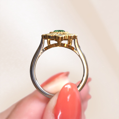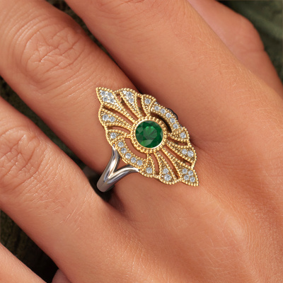 Dieser Verlobungsring aus 14 Karat Weißgold heißt Hanna. Dieser filigrane Weißgold Verlobungsring mit 5 mm Smaragd ist ein wahres Kunstwerk! Ein wunderschön geschmücktes Design aus komplizierten Drähten. Mit Hingabe, Geduld und äußerster Präzision werden unsere erfahrenen Juweliere einen Ring nur für Sie entwerfen. Die Verzierungen mit kleinen Drähten werden von Hand in Perfektion gefertigt. Das ist ein langwieriger Prozess, der Schweißen, Werkzeug und Polieren umfasst, bis der erfahrene Juwelier mit dem Ergebnis zufrieden ist: Ein perfekter, auffälliger Ring, der ihn mit Freude zum Strahlen bringt. Deshalb ist der Vintage, filigrane Verlobungsring ein außergewöhnliches Geschenk, um die Liebe Ihres Lebens zu verwöhnen. Ein handgemachter, einzigartiger und personalisierter Ring, den man jemandem in diesem besonderen Moment geben kann, wenn man die eine Frage stellt. Ist das nicht wunderbar? Jedes Schmuckstück ist um Ihrem Finger Glanz zu verleihen. Jeder Ring wird von unseren Goldschmieden liebevoll von Hand gefertigt.Nach Erhalt Ihrer Bestellung beginnen unsere Goldschmiede mit Leidenschaft den kreativen Prozess und fertigen Ihren Verlobungsring in unserem eigenen Studio. Da wir keine großen Lager haben, werden diese Kosten nicht an Sie weitergegeben. Unsere Preisgestaltung ist der Beweis dafür! Wir bieten Schmuck zum niedrigsten Preis, garantiert.Unser Team fügt unserer Online-Kollektion täglich neue Designs hinzu. Unsere Designer und Goldschmiede arbeiten zusammen, um das beste Design zu kreieren. Wir bemühen uns, eine vielfältige Kollektion von Schmuckstücken anzubieten. Vielleicht haben Sie ein bestimmtes Design im Sinn. Eines, dass Sie irgendwo gesehen haben. Gerne geben wir Ihnen eine kostenlose Beratung. Wir machen Ihnen ein Angebot, basierend auf einem fairen Preis/Leistungsverhältnis, das Sie verblüffen wird.Um es einfacher zu machen, bieten wir eine kostenlose 30-tägige Rücksendung.