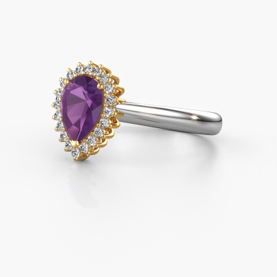 Der oben gezeigte Ring wird Tilly per 1 genannt. Ein Cluster Ring mit einem zentralen Edelstein, umgeben von kleineren Steinen, wir nennen das einen Cluster Ring. Diese Version in 14 Karat Weißgold hat einen 8x6 mm tropfen Amethyst als Mittelstein, umschlossen von kleineren Diamanten. Der exklusive, Weißgold Cluster Verlobungsring zeichnet sich durch seine Form aus. Zusammen bilden die kleineren und größeren Amethyst eine Blume und scheinen zu einem großen, funkelnden Edelstein zu verschmelzen. Dieser exklusive Verlobungsring wird auch als Blumen- oder Rosettenring bezeichnet. Unsere erfahrenen Juweliere stellen sicher, dass die kleineren Diamanten identisch gesetzt sind, so dass es an dem Amethyst keine Lichtstörungen gibt, sondern sie stattdessen eine Einheit bilden. Mit perfekter Präzision und geschickter Hand wird jeder Amethyst in den Ring gesetzt. Während der Herstellung wird alles ständig überwacht, um sicherzustellen, dass das Licht einwandfrei reflektiert wird. Das alles führt zu einem einzigartigen Verlobungsring mit einem strahlenden Amethysten in seiner Mitte. Ein schönes, bedeutungsvolles Geschenk, um es der Liebe Ihres Lebens zu schenken. Nachdem Sie Ihre Bestellung aufgegeben haben, beginnen unsere Goldschmiede mit dem kreativen Prozess der Herstellung Ihres Tilly per 1 Verlobungsring. Wir haben keine Lager. Das ist vorteilhaft, da diese Kosten nicht an Sie weitergegeben werden. Daher sind wir in der Lage, Schmuck zu außergewöhnlich niedrigen Preisen anzubieten.Unser Team fügt unserer Online-Kollektion täglich neue Designs hinzu. Unsere Designer und Goldschmiede arbeiten zusammen, um das beste Design zu kreieren. Wir bemühen uns, eine vielfältige Kollektion von Schmuckstücken anzubieten. Vielleicht haben Sie ein bestimmtes Design im Sinn. Eines, dass Sie irgendwo gesehen haben. Gerne geben wir Ihnen eine kostenlose Beratung. Wir machen Ihnen ein Angebot, basierend auf einem fairen Preis/Leistungsverhältnis, das Sie verblüffen wird.Um es einfacher zu machen, bieten wir eine kostenlose 30-tägige Rücksendung.