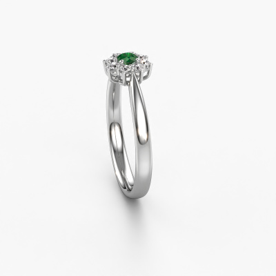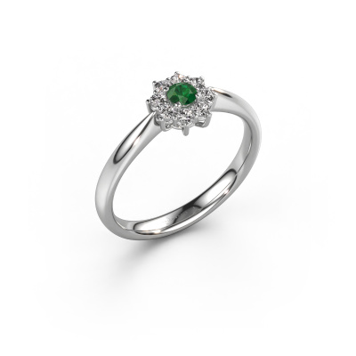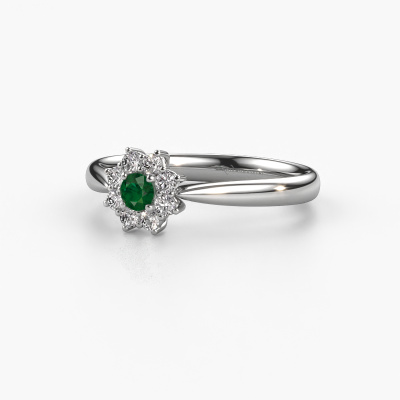 Der oben gezeigte Ring wird Carolyn 1 genannt. Ein Flower Ring mit einem zentralen Edelstein, umgeben von kleineren Steinen, wir nennen das einen Cluster Ring. Diese Version in 14 Karat Weißgold hat einen 3 mm rund Smaragd als Mittelstein, umschlossen von kleineren Diamanten. Der traditionell, Weißgold Flower Verlobungsring zeichnet sich durch seine Form aus. Zusammen bilden die kleineren und größeren Smaragd eine Blume und scheinen zu einem großen, funkelnden Edelstein zu verschmelzen. Dieser traditionell Verlobungsring wird auch als Blumen- oder Rosettenring bezeichnet. Unsere erfahrenen Juweliere stellen sicher, dass die kleineren Diamanten identisch gesetzt sind, so dass es an dem Smaragd keine Lichtstörungen gibt, sondern sie stattdessen eine Einheit bilden. Mit perfekter Präzision und geschickter Hand wird jeder Smaragd in den Ring gesetzt. Während der Herstellung wird alles ständig überwacht, um sicherzustellen, dass das Licht einwandfrei reflektiert wird. Das alles führt zu einem einzigartigen Verlobungsring mit einem strahlenden Smaragd in seiner Mitte. Ein schönes, bedeutungsvolles Geschenk, um es der Liebe Ihres Lebens zu schenken. Mit unserer modernen Technik können wir Schmuckstücke von höchster Qualität mit größter Sorgfalt für Sie entwerfen und anpassen. Unsere Verlobungsringe sind immer um 30 Prozent günstiger als bei anderen Juwelieren. Wir fertigen Verlobungsringe auf Bestellung, also müssen wir keine großen Lager unterhalten. Wenn Sie ein bestimmtes Budget haben, beraten wir Sie gerne entsprechend.Haben Sie einen bestimmten Ring im Sinn? Eines, dass Sie irgendwo gesehen haben. Bitte zögern Sie nicht, uns zu sagen, was Sie wollen und wir werden Ihr Design in einen Einzigartigen Verlobungsring verwandeln. Sie können die Entwicklungen Ihres Ringdesigns verfolgen, da wir 3D-Zeichnungen verwenden. Das gibt Ihnen eine realistische Vorschau Ihres Designs. Wir senden Ihnen gerne ein unverbindliches Angebot zu einem fairen Preis/Leistungsverhältnis. Es wird Sie erstaunen.Um es einfacher zu machen, bieten wir eine kostenlose 30-tägige Rücksendung.
