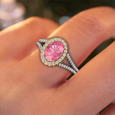 Dieser Verlobungsring aus 14 Karat Weißgold mit 8x6 mm Pink Saphir heißt Verla ovl 2. Liebt deine Freundin exklusiven Schmuck? Oder möchten Sie ihr zeigen, dass sie den besten Schmuck verdient? Dieser Weißgold Ring ist pure Handwerkskunst - Liebe und Leidenschaft kombiniert mit den neuesten Techniken, die in perfekter Harmonie zusammentreffen. Es erfordert ein scharfes Auge, Geduld und eine geschickte Hand, um diesen Ring in Perfektion zu formen. Genau der richtige Job für unsere erfahrenen Juweliere! Die Pink Saphir-Fassung verleiht diesem Weißgold gespaltene Bänder Ring eine extra glänzende Erscheinung. Passen Sie den Stil des Rings nach Ihren Wünschen und mit einer großen Auswahl an Edelmetallen und Edelsteinen an, die Sie selbst auswählen können. So kreieren Sie einen einzigartigen Ring für die exklusivste Frau Ihres Lebens! Jedes Schmuckstück wird hergestellt von einem Team leidenschaftlicher Goldschmiede und Schmuckdesigner. Das wird Ihr Kronjuwel unbedingt zu einem Blickfang machen.Mit unserer modernen Technik können wir Schmuckstücke von höchster Qualität mit größter Sorgfalt für Sie entwerfen und anpassen. Unsere Verlobungsringe sind immer um 30 Prozent günstiger als bei anderen Juwelieren. Wir fertigen Verlobungsringe auf Bestellung, also müssen wir keine großen Lager unterhalten. Wenn Sie ein bestimmtes Budget haben, beraten wir Sie gerne entsprechend.Unser Team fügt unserer Online-Kollektion täglich neue Designs hinzu. Unsere Designer und Goldschmiede arbeiten zusammen, um das beste Design zu kreieren. Wir bemühen uns, eine vielfältige Kollektion von Schmuckstücken anzubieten. Vielleicht haben Sie ein bestimmtes Design im Sinn. Eines, dass Sie irgendwo gesehen haben. Gerne geben wir Ihnen eine kostenlose Beratung. Wir machen Ihnen ein Angebot, basierend auf einem fairen Preis/Leistungsverhältnis, das Sie verblüffen wird.Um es einfacher zu machen, bieten wir eine kostenlose 30-tägige Rücksendung.