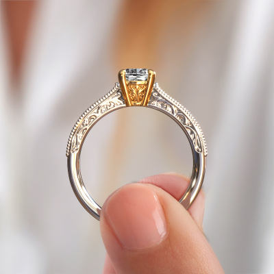 Dieser Verlobungsring aus 14 Karat Weißgold heißt Shonta CUS. Dieser filigrane Weißgold Verlobungsring mit 1.134 crt Lab-grown Diamant ist ein wahres Kunstwerk! Ein wunderschön geschmücktes Design aus komplizierten Drähten. Mit Hingabe, Geduld und äußerster Präzision werden unsere erfahrenen Juweliere einen Ring nur für Sie entwerfen. Die Verzierungen mit kleinen Drähten werden von Hand in Perfektion gefertigt. Das ist ein langwieriger Prozess, der Schweißen, Werkzeug und Polieren umfasst, bis der erfahrene Juwelier mit dem Ergebnis zufrieden ist: Ein perfekter, auffälliger Ring, der ihn mit Freude zum Strahlen bringt. Deshalb ist der Vintage, filigrane Verlobungsring ein außergewöhnliches Geschenk, um die Liebe Ihres Lebens zu verwöhnen. Ein handgemachter, einzigartiger und personalisierter Ring, den man jemandem in diesem besonderen Moment geben kann, wenn man die eine Frage stellt. Ist das nicht wunderbar? Jedes Schmuckstück ist um Ihrem Finger Glanz zu verleihen. Jeder Ring wird von unseren Goldschmieden liebevoll von Hand gefertigt.Nachdem Sie Ihre Bestellung aufgegeben haben, beginnen unsere Goldschmiede mit dem kreativen Prozess der Herstellung Ihres Shonta CUS Verlobungsring. Wir haben keine Lager. Das ist vorteilhaft, da diese Kosten nicht an Sie weitergegeben werden. Daher sind wir in der Lage, Schmuck zu außergewöhnlich niedrigen Preisen anzubieten.Unsere Designer und Goldschmiede arbeiten jeden Tag zusammen und versuchen, neue Schmuckstücke zu kreieren. Vielleicht haben Sie irgendwo einen schönen, Vintage Verlobungsring gefunden, nach dem Ihr einzigartiger Ring gestaltet werden kann. Setzen Sie sich mit uns in Verbindung. Wir machen Ihnen ein Angebot, basierend auf einem fairen Preis/Leistungsverhältnis, das Sie begeistern wird.Um es einfacher zu machen, bieten wir eine kostenlose 30-tägige Rücksendung.