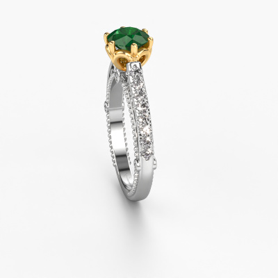 Dieser Verlobungsring aus 14 Karat Weißgold heißt Venita und hat einen Smaragd Edelstein. Ein außergewöhnlicher, Weißgold Vintage Ring. Einer, der die Liebe Ihres Lebens mit Sicherheit wie ein Smaragd erstrahlen lässt! Das hoffen wir zu erreichen. Dieser Vintage Verlobungsring ist mit exquisiten Smaragd besetzt. Welchen Edelstein Sie aus unserer Auswahl haben möchten, liegt ganz bei Ihnen. Der Edelstein wird mit großer Sorgfalt ausgewählt. Denn wir glauben, dass Ihr Verlobungsring nur mit dem schönsten Edelstein gekrönt sein darf. Sehen Sie das auch so? Unser erfahrener Juwelier entwirft Ihren Ring in unserem eigenen Studio, wo der Smaragd mit großer Präzision eingefasst wird. Der Ring wird dann bearbeitet und poliert, bis er perfekt ist. Nichts als das Beste für die Liebe Ihres Lebens! Jedes Schmuckstück wird von unseren Meister-Goldschmieden in unserem eigenen Studio für Sie gefertigt.Nach Erhalt Ihrer Bestellung beginnen unsere Goldschmiede mit Leidenschaft den kreativen Prozess und fertigen Ihren Verlobungsring in unserem eigenen Studio. Da wir keine großen Lager haben, werden diese Kosten nicht an Sie weitergegeben. Unsere Preisgestaltung ist der Beweis dafür! Wir bieten Schmuck zum niedrigsten Preis, garantiert.Unser Team fügt unserer Online-Kollektion täglich neue Designs hinzu. Unsere Designer und Goldschmiede arbeiten zusammen, um das beste Design zu kreieren. Wir bemühen uns, eine vielfältige Kollektion von Schmuckstücken anzubieten. Vielleicht haben Sie ein bestimmtes Design im Sinn. Eines, dass Sie irgendwo gesehen haben. Gerne geben wir Ihnen eine kostenlose Beratung. Wir machen Ihnen ein Angebot, basierend auf einem fairen Preis/Leistungsverhältnis, das Sie verblüffen wird.Um es einfacher zu machen, bieten wir eine kostenlose 30-tägige Rücksendung.