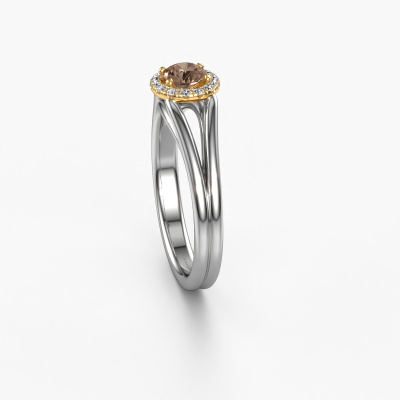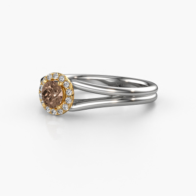 Der oben gezeigte Verlobungsring wird Verla rnd 1 genannt. Es ist ein Halo Ring, da er einen zentralen Edelstein und ein Band mit Pavé-Fassung hat. Der 14 Karat Weißgold ring ist mit einem 0.40 crt rund Braun Diamant-Mittelstein besetzt und um ihn herum eine Pavé-Fassung mit Diamanten. Was diesen klassische, Weißgold Halo Ring besonders macht, sind die kleineren Steine, die den zentralen Stein umschließen. Dieser wunderschöne Verlobungsring wird als Halo Ring bezeichnet, da die kleineren Edelsteine dem zentralen Stein einen Lichthof geben. Damit die kleineren Steine den Mittelstein verstärken, müssen sie so platziert werden, dass keine Lichteinflüsse auftreten. Und hier kommen unsere erfahrenen Goldschmiede ins Spiel. Jeder einzelne Stein wird sorgfältig von Hand in den Ring gesetzt. Während der Herstellung wird der Lichteinfall ständig überprüft. So können wir sicherstellen, dass der spezielle Lichtkranz noch sichtbar ist. Am Ende erhalten Sie einen einzigartigen Verlobungsring mit einem Braune Diamanten Ihrer Wahl in der Mitte. Sie können sich die Wirkung eines solchen Ringes vorstellen, wenn Sie ihn an ihrem besonderen Tag für sie zum Leuchten bringen. Durch die Kombination modernster Technik mit uralter Handwerkskunst können wir alle Verlobungsringe in unserem eigenen Studio anfertigen. Jedes Schmuckstück wird auf Anfrage gefertigt. Das ist vorteilhaft, weil wir Ihnen dadurch einen Preis anbieten können, den Sie nirgendwo anders finden.Unser Team fügt unserer Online-Kollektion täglich neue Designs hinzu. Unsere Designer und Goldschmiede arbeiten zusammen, um das beste Design zu kreieren. Wir bemühen uns, eine vielfältige Kollektion von Schmuckstücken anzubieten. Vielleicht haben Sie ein bestimmtes Design im Sinn. Eines, dass Sie irgendwo gesehen haben. Gerne geben wir Ihnen eine kostenlose Beratung. Wir machen Ihnen ein Angebot, basierend auf einem fairen Preis/Leistungsverhältnis, das Sie verblüffen wird.Um es einfacher zu machen, bieten wir eine kostenlose 30-tägige Rücksendung.