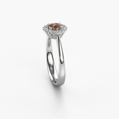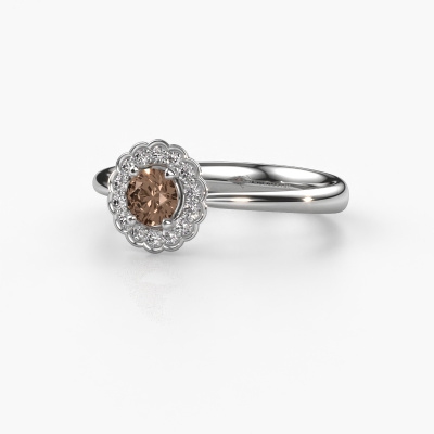 Der oben gezeigte Verlobungsring wird Debi genannt. Es ist ein Halo Ring, da er einen zentralen Edelstein und ein Band mit Pavé-Fassung hat. Der 14 Karat Weißgold ring ist mit einem 0.30 crt rund Braun Diamant-Mittelstein besetzt und um ihn herum eine Pavé-Fassung mit Diamanten. Was diesen klassische, Weißgold Halo Ring besonders macht, sind die kleineren Steine, die den zentralen Stein umschließen. Dieser wunderschöne Verlobungsring wird als Halo Ring bezeichnet, da die kleineren Edelsteine dem zentralen Stein einen Lichthof geben. Damit die kleineren Steine den Mittelstein verstärken, müssen sie so platziert werden, dass keine Lichteinflüsse auftreten. Und hier kommen unsere erfahrenen Goldschmiede ins Spiel. Jeder einzelne Stein wird sorgfältig von Hand in den Ring gesetzt. Während der Herstellung wird der Lichteinfall ständig überprüft. So können wir sicherstellen, dass der spezielle Lichtkranz noch sichtbar ist. Am Ende erhalten Sie einen einzigartigen Verlobungsring mit einem Braune Diamanten Ihrer Wahl in der Mitte. Sie können sich die Wirkung eines solchen Ringes vorstellen, wenn Sie ihn an ihrem besonderen Tag für sie zum Leuchten bringen. Da wir unsere eigenen Ringe entwerfen und liefern, können wir Ihnen einen Verlobungsring zu einem Preis anbieten, den Sie nirgendwo anders finden. Ein Ring wird auf Bestellung angefertigt, wodurch kein überschüssiges Material anfällt. So können wir Ihnen ein gutes Angebot zum besten Preis machen. Wir verstehen, dass es sich riskant anfühlt, Ihren Verlobungsring online zu kaufen. Jedoch helfen wir Ihnen gerne beim Designprozess unter Berücksichtigung Ihres Budgets.Unser Team fügt unserer Online-Kollektion täglich neue Designs hinzu. Unsere Designer und Goldschmiede arbeiten zusammen, um das beste Design zu kreieren. Wir bemühen uns, eine vielfältige Kollektion von Schmuckstücken anzubieten. Vielleicht haben Sie ein bestimmtes Design im Sinn. Eines, dass Sie irgendwo gesehen haben. Gerne geben wir Ihnen eine kostenlose Beratung. Wir machen Ihnen ein Angebot, basierend auf einem fairen Preis/Leistungsverhältnis, das Sie verblüffen wird.Um es einfacher zu machen, bieten wir eine kostenlose 30-tägige Rücksendung.