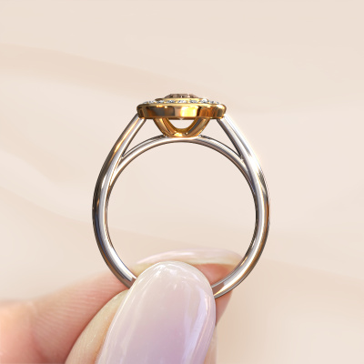 Der oben gezeigte Verlobungsring wird Noud 1 RND genannt. Es ist ein Halo Ring, da er einen zentralen Edelstein und ein Band mit Pavé-Fassung hat. Der 14 Karat Weißgold ring ist mit einem 0.40 crt rund Braun Diamant-Mittelstein besetzt und um ihn herum eine Pavé-Fassung mit Diamanten. Was diesen traditionell, Weißgold Halo Ring besonders macht, sind die kleineren Steine, die den zentralen Stein umschließen. Dieser wunderschöne Verlobungsring wird als Halo Ring bezeichnet, da die kleineren Edelsteine dem zentralen Stein einen Lichthof geben. Damit die kleineren Steine den Mittelstein verstärken, müssen sie so platziert werden, dass keine Lichteinflüsse auftreten. Und hier kommen unsere erfahrenen Goldschmiede ins Spiel. Jeder einzelne Stein wird sorgfältig von Hand in den Ring gesetzt. Während der Herstellung wird der Lichteinfall ständig überprüft. So können wir sicherstellen, dass der spezielle Lichtkranz noch sichtbar ist. Am Ende erhalten Sie einen einzigartigen Verlobungsring mit einem Braune Diamanten Ihrer Wahl in der Mitte. Sie können sich die Wirkung eines solchen Ringes vorstellen, wenn Sie ihn an ihrem besonderen Tag für sie zum Leuchten bringen. Durch die Kombination modernster Technik mit uralter Handwerkskunst können wir alle Verlobungsringe in unserem eigenen Studio anfertigen. Jedes Schmuckstück wird auf Anfrage gefertigt. Das ist vorteilhaft, weil wir Ihnen dadurch einen Preis anbieten können, den Sie nirgendwo anders finden.Haben Sie einen bestimmten Ring im Sinn? Eines, dass Sie irgendwo gesehen haben. Bitte zögern Sie nicht, uns zu sagen, was Sie wollen und wir werden Ihr Design in einen Einzigartigen Verlobungsring verwandeln. Sie können die Entwicklungen Ihres Ringdesigns verfolgen, da wir 3D-Zeichnungen verwenden. Das gibt Ihnen eine realistische Vorschau Ihres Designs. Wir senden Ihnen gerne ein unverbindliches Angebot zu einem fairen Preis/Leistungsverhältnis. Es wird Sie erstaunen.Um es einfacher zu machen, bieten wir eine kostenlose 30-tägige Rücksendung.