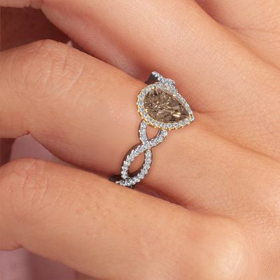 Dieser Verlobungsring aus 14 Karat Weißgold mit 0.65 crt Braun Diamant heißt Dionne pear. Liebt deine Freundin exklusiven Schmuck? Oder möchten Sie ihr zeigen, dass sie den besten Schmuck verdient? Dieser Weißgold Ring ist pure Handwerkskunst - Liebe und Leidenschaft kombiniert mit den neuesten Techniken, die in perfekter Harmonie zusammentreffen. Es erfordert ein scharfes Auge, Geduld und eine geschickte Hand, um diesen Ring in Perfektion zu formen. Genau der richtige Job für unsere erfahrenen Juweliere! Die Braune Diamanten-Fassung verleiht diesem Weißgold Drehungen Ring eine extra glänzende Erscheinung. Passen Sie den Stil des Rings nach Ihren Wünschen und mit einer großen Auswahl an Edelmetallen und Edelsteinen an, die Sie selbst auswählen können. So kreieren Sie einen einzigartigen Ring für die exklusivste Frau Ihres Lebens! Jedes Schmuckstück ist um Ihrem Finger Glanz zu verleihen. Jeder Ring wird von unseren Goldschmieden liebevoll von Hand gefertigt.Haben Sie ein bestimmtes Budget? Sie können uns gerne kontaktieren, damit wir Ihre Optionen besprechen können. Wir bieten unsere Verlobungsringe zum garantiert besten Preis, denn wir fertigen sie auf Bestellung. Solche Preise finden Sie nirgendwo anders!Verschiedene Arten von neuen Ringen werden täglich von unserem Team angefertigt. Vielleicht haben Sie irgendwo einen Pavé Solitär Verlobungsring gefunden. Einen, den Sie Ihrem Liebsten schenken möchten. Bitte zögern Sie nicht, unseren Schmuckdesignern Ihre Gedanken und Ihr Design zu zeigen. Wir würden gerne Ihr Design in einen exklusive Verlobungsring verwandeln. Sie können die Entwicklungen Ihres Ringdesigns verfolgen, da wir sehr detaillierte 3D-Zeichnungen verwenden. Darüber hinaus können Sie einen Dummy des Designs bestellen. Ein Dummy ist ein Kunststoffring, der nach Ihrem Ringdesign gestaltet werden kann. Sie können ihn anprobieren und prüfen, ob der Verlobungsring Ihren Vorstellungen entspricht. Wir senden Ihnen gerne ein unverbindliches Angebot zu einem fairen Preis/Leistungsverhältnis. Das Angebot wird Sie angesichts der Qualität des Rings und der Edelsteine verblüffen.Um es einfacher zu machen, bieten wir eine kostenlose 30-tägige Rücksendung.