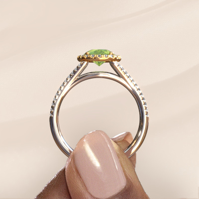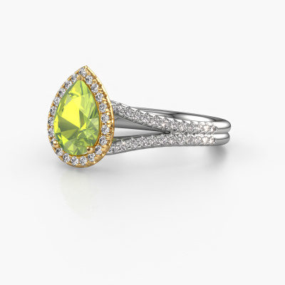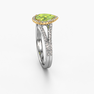 Der oben gezeigte Verlobungsring wird Verla pear 2 genannt. Es ist ein Halo Ring, da er einen zentralen Edelstein und ein Band mit Pavé-Fassung hat. Der 14 Karat Weißgold ring ist mit einem 8x6 mm tropfen Peridot-Mittelstein besetzt und um ihn herum eine Pavé-Fassung mit Diamanten. Was diesen exklusive, Weißgold Halo Ring besonders macht, sind die kleineren Steine, die den zentralen Stein umschließen. Dieser wunderschöne Verlobungsring wird als Halo Ring bezeichnet, da die kleineren Edelsteine dem zentralen Stein einen Lichthof geben. Damit die kleineren Steine den Mittelstein verstärken, müssen sie so platziert werden, dass keine Lichteinflüsse auftreten. Und hier kommen unsere erfahrenen Goldschmiede ins Spiel. Jeder einzelne Stein wird sorgfältig von Hand in den Ring gesetzt. Während der Herstellung wird der Lichteinfall ständig überprüft. So können wir sicherstellen, dass der spezielle Lichtkranz noch sichtbar ist. Am Ende erhalten Sie einen einzigartigen Verlobungsring mit einem Peridot Ihrer Wahl in der Mitte. Sie können sich die Wirkung eines solchen Ringes vorstellen, wenn Sie ihn an ihrem besonderen Tag für sie zum Leuchten bringen. Nach Erhalt Ihrer Bestellung beginnen unsere Goldschmiede mit Leidenschaft den kreativen Prozess und fertigen Ihren Verlobungsring in unserem eigenen Studio. Da wir keine großen Lager haben, werden diese Kosten nicht an Sie weitergegeben. Unsere Preisgestaltung ist der Beweis dafür! Wir bieten Schmuck zum niedrigsten Preis, garantiert.Unsere Designer und Goldschmiede arbeiten jeden Tag zusammen und versuchen, neue Schmuckstücke zu kreieren. Vielleicht haben Sie irgendwo einen schönen, exklusive Verlobungsring gefunden, nach dem Ihr einzigartiger Ring gestaltet werden kann. Setzen Sie sich mit uns in Verbindung. Wir machen Ihnen ein Angebot, basierend auf einem fairen Preis/Leistungsverhältnis, das Sie begeistern wird.Um es einfacher zu machen, bieten wir eine kostenlose 30-tägige Rücksendung.