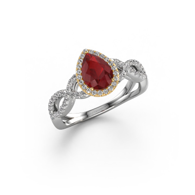 Dieser Verlobungsring aus 14 Karat Weißgold mit 7x5 mm Rubin heißt Dionne pear. Liebt deine Freundin exklusiven Schmuck? Oder möchten Sie ihr zeigen, dass sie den besten Schmuck verdient? Dieser Weißgold Ring ist pure Handwerkskunst - Liebe und Leidenschaft kombiniert mit den neuesten Techniken, die in perfekter Harmonie zusammentreffen. Es erfordert ein scharfes Auge, Geduld und eine geschickte Hand, um diesen Ring in Perfektion zu formen. Genau der richtige Job für unsere erfahrenen Juweliere! Die Rubin-Fassung verleiht diesem Weißgold Drehungen Ring eine extra glänzende Erscheinung. Passen Sie den Stil des Rings nach Ihren Wünschen und mit einer großen Auswahl an Edelmetallen und Edelsteinen an, die Sie selbst auswählen können. So kreieren Sie einen einzigartigen Ring für die exklusivste Frau Ihres Lebens! Jedes Schmuckstück ist um Ihrem Finger Glanz zu verleihen. Jeder Ring wird von unseren Goldschmieden liebevoll von Hand gefertigt.Haben Sie ein bestimmtes Budget? Sie können uns gerne kontaktieren, damit wir Ihre Optionen besprechen können. Wir bieten unsere Verlobungsringe zum garantiert besten Preis, denn wir fertigen sie auf Bestellung. Solche Preise finden Sie nirgendwo anders!Verschiedene Arten von neuen Ringen werden täglich von unserem Team angefertigt. Vielleicht haben Sie irgendwo einen Pavé Solitär Verlobungsring gefunden. Einen, den Sie Ihrem Liebsten schenken möchten. Bitte zögern Sie nicht, unseren Schmuckdesignern Ihre Gedanken und Ihr Design zu zeigen. Wir würden gerne Ihr Design in einen exklusive Verlobungsring verwandeln. Sie können die Entwicklungen Ihres Ringdesigns verfolgen, da wir sehr detaillierte 3D-Zeichnungen verwenden. Darüber hinaus können Sie einen Dummy des Designs bestellen. Ein Dummy ist ein Kunststoffring, der nach Ihrem Ringdesign gestaltet werden kann. Sie können ihn anprobieren und prüfen, ob der Verlobungsring Ihren Vorstellungen entspricht. Wir senden Ihnen gerne ein unverbindliches Angebot zu einem fairen Preis/Leistungsverhältnis. Das Angebot wird Sie angesichts der Qualität des Rings und der Edelsteine verblüffen.Um es einfacher zu machen, bieten wir eine kostenlose 30-tägige Rücksendung.