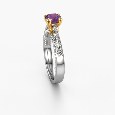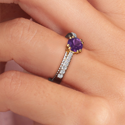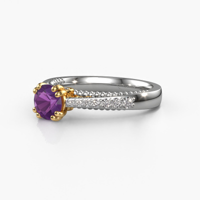 Der oben gezeigte Weißgold Verlobungsring wird Rozella genannt. Es ist ein Pavé Solitär Ring, da er einen zentralen Edelstein und ein Band mit Pavé-Fassung hat. Der einzigartige Pavé Solitär Verlobungsring ist in der Kombination 14 Karat Weißgold mit Gold und ist mit einem rund 5.5 mm Amethyst-Mittelstein besetzt und das Band hat eine Pavé-Fassung mit Lab grown Diamant. Jedes Schmuckstück lässt Ihren Finger erstrahlen. Ihr Ring ist mit Liebe von unseren Goldschmieden handgefertigt. Um den zentralen Stein noch mehr zu betonen, hat das Band eine Pavé-Fassung mit weiteren Amethyst. Durch die offenen Krappen kann das Licht aus mehreren Winkeln auf den Amethyst treffen und der Amethyst-Ring funkelt noch mehr. Das obere Foto zeigt die leidenschaftlich handgefertigten Details des Rings. Die hohe Positionierung der Mittelstein ist ein echter Blickfang. Der perfekte Verlobungsring für das Kronjuwel Ihres Lebens!Nachdem Sie Ihre Bestellung aufgegeben haben, beginnen unsere Goldschmiede mit dem kreativen Prozess der Herstellung Ihres Rozella Verlobungsring. Wir haben keine Lager. Das ist vorteilhaft, da diese Kosten nicht an Sie weitergegeben werden. Daher sind wir in der Lage, Schmuck zu außergewöhnlich niedrigen Preisen anzubieten.Unsere Designer und Goldschmiede arbeiten jeden Tag zusammen und versuchen, neue Schmuckstücke zu kreieren. Vielleicht haben Sie irgendwo einen schönen, einzigartige Verlobungsring gefunden, nach dem Ihr einzigartiger Ring gestaltet werden kann. Setzen Sie sich mit uns in Verbindung. Wir machen Ihnen ein Angebot, basierend auf einem fairen Preis/Leistungsverhältnis, das Sie begeistern wird.Um es einfacher zu machen, bieten wir eine kostenlose 30-tägige Rücksendung.