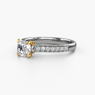 Der oben gezeigte Weißgold Verlobungsring wird Valorie cus 2 genannt. Es ist ein Pavé Solitär Ring, da er einen zentralen Edelstein und ein Band mit Pavé-Fassung hat. Der traditionell Pavé Solitär Verlobungsring ist in der Kombination 14 Karat Weißgold mit Gold und ist mit einem cussion 1.00 crt Lab-grown Diamant-Mittelstein besetzt und das Band hat eine Pavé-Fassung mit Diamanten. Jedes Schmuckstück wird von unseren Meister-Goldschmieden in unserem eigenen Studio für Sie gefertigt. Um den zentralen Stein noch mehr zu betonen, hat das Band eine Pavé-Fassung mit weiteren Lab-grown Diamant. Durch die offenen Krappen kann das Licht aus mehreren Winkeln auf den Lab-grown Diamant treffen und der Lab-grown Diamant-Ring funkelt noch mehr. Das obere Foto zeigt die leidenschaftlich handgefertigten Details des Rings. Die hohe Positionierung der Mittelstein ist ein echter Blickfang. Der perfekte Verlobungsring für das Kronjuwel Ihres Lebens!Durch die Kombination modernster Technik mit uralter Handwerkskunst können wir alle Verlobungsringe in unserem eigenen Studio anfertigen. Jedes Schmuckstück wird auf Anfrage gefertigt. Das ist vorteilhaft, weil wir Ihnen dadurch einen Preis anbieten können, den Sie nirgendwo anders finden.Unsere Designer und Goldschmiede arbeiten jeden Tag zusammen und versuchen, neue Schmuckstücke zu kreieren. Vielleicht haben Sie irgendwo einen schönen, traditionell Verlobungsring gefunden, nach dem Ihr einzigartiger Ring gestaltet werden kann. Setzen Sie sich mit uns in Verbindung. Wir machen Ihnen ein Angebot, basierend auf einem fairen Preis/Leistungsverhältnis, das Sie begeistern wird.Um es einfacher zu machen, bieten wir eine kostenlose 30-tägige Rücksendung.