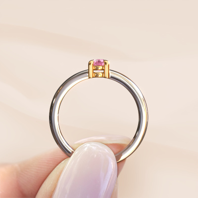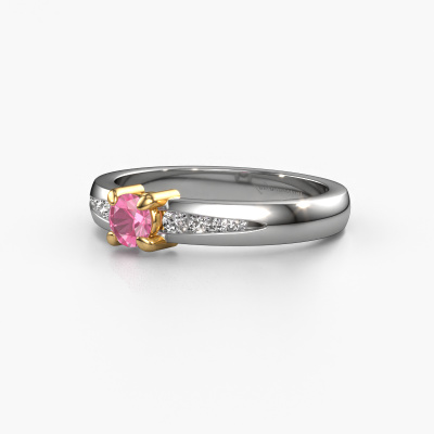 Der oben gezeigte Weißgold Verlobungsring wird Zohra genannt. Es ist ein Pavé Solitär Ring, da er einen zentralen Edelstein und ein Band mit Pavé-Fassung hat. Der moderne Pavé Solitär Verlobungsring ist in der Kombination 14 Karat Weißgold mit Gold und ist mit einem rund 4 mm Pink Saphir-Mittelstein besetzt und das Band hat eine Pavé-Fassung mit Diamanten. Jedes Schmuckstück wird von unseren Meister-Goldschmieden in unserem eigenen Studio für Sie gefertigt. Um den zentralen Stein noch mehr zu betonen, hat das Band eine Pavé-Fassung mit weiteren Pink Saphir. Durch die offenen Krappen kann das Licht aus mehreren Winkeln auf den Pink Saphir treffen und der Pink Saphir-Ring funkelt noch mehr. Das obere Foto zeigt die leidenschaftlich handgefertigten Details des Rings. Die hohe Positionierung der Mittelstein ist ein echter Blickfang. Der perfekte Verlobungsring für das Kronjuwel Ihres Lebens!Da wir unsere eigenen Ringe entwerfen und liefern, können wir Ihnen einen Verlobungsring zu einem Preis anbieten, den Sie nirgendwo anders finden. Ein Ring wird auf Bestellung angefertigt, wodurch kein überschüssiges Material anfällt. So können wir Ihnen ein gutes Angebot zum besten Preis machen. Wir verstehen, dass es sich riskant anfühlt, Ihren Verlobungsring online zu kaufen. Jedoch helfen wir Ihnen gerne beim Designprozess unter Berücksichtigung Ihres Budgets.Unser Team fügt unserer Online-Kollektion täglich neue Designs hinzu. Unsere Designer und Goldschmiede arbeiten zusammen, um das beste Design zu kreieren. Wir bemühen uns, eine vielfältige Kollektion von Schmuckstücken anzubieten. Vielleicht haben Sie ein bestimmtes Design im Sinn. Eines, dass Sie irgendwo gesehen haben. Gerne geben wir Ihnen eine kostenlose Beratung. Wir machen Ihnen ein Angebot, basierend auf einem fairen Preis/Leistungsverhältnis, das Sie verblüffen wird.Um es einfacher zu machen, bieten wir eine kostenlose 30-tägige Rücksendung.