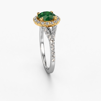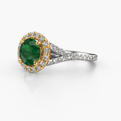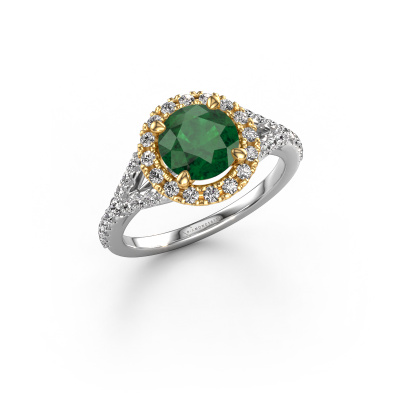 Der oben gezeigte Weißgold Verlobungsring wird Kimber RND genannt. Es ist ein Pavé Solitär Ring, da er einen zentralen Edelstein und ein Band mit Pavé-Fassung hat. Der klassische Pavé Solitär Verlobungsring ist in der Kombination 14 Karat Weißgold mit Gold und ist mit einem rund 7 mm Smaragd-Mittelstein besetzt und das Band hat eine Pavé-Fassung mit Lab grown Diamant. Jedes Schmuckstück ist um Ihrem Finger Glanz zu verleihen. Jeder Ring wird von unseren Goldschmieden liebevoll von Hand gefertigt. Um den zentralen Stein noch mehr zu betonen, hat das Band eine Pavé-Fassung mit weiteren Smaragd. Durch die offenen Krappen kann das Licht aus mehreren Winkeln auf den Smaragd treffen und der Smaragd-Ring funkelt noch mehr. Das obere Foto zeigt die leidenschaftlich handgefertigten Details des Rings. Die hohe Positionierung der Mittelstein ist ein echter Blickfang. Der perfekte Verlobungsring für das Kronjuwel Ihres Lebens!Nach Erhalt Ihrer Bestellung beginnen unsere Goldschmiede mit Leidenschaft den kreativen Prozess und fertigen Ihren Verlobungsring in unserem eigenen Studio. Da wir keine großen Lager haben, werden diese Kosten nicht an Sie weitergegeben. Unsere Preisgestaltung ist der Beweis dafür! Wir bieten Schmuck zum niedrigsten Preis, garantiert.Unser Team fügt unserer Online-Kollektion täglich neue Designs hinzu. Unsere Designer und Goldschmiede arbeiten zusammen, um das beste Design zu kreieren. Wir bemühen uns, eine vielfältige Kollektion von Schmuckstücken anzubieten. Vielleicht haben Sie ein bestimmtes Design im Sinn. Eines, dass Sie irgendwo gesehen haben. Gerne geben wir Ihnen eine kostenlose Beratung. Wir machen Ihnen ein Angebot, basierend auf einem fairen Preis/Leistungsverhältnis, das Sie verblüffen wird.Um es einfacher zu machen, bieten wir eine kostenlose 30-tägige Rücksendung.